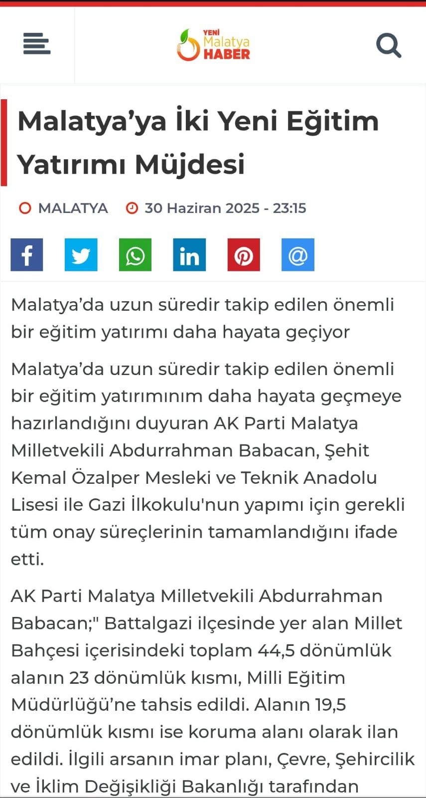 Süreci yakından takip ederek destek olan Malatya Milletvekilimiz Sayın Abdurrahman Babacan’a özellikle teşekkür ediyor, katkı sunan Malatya İl Milli Eğitim Müdürlüğü ve tüm yetkililere şükranlarımızı sunuyoruz.